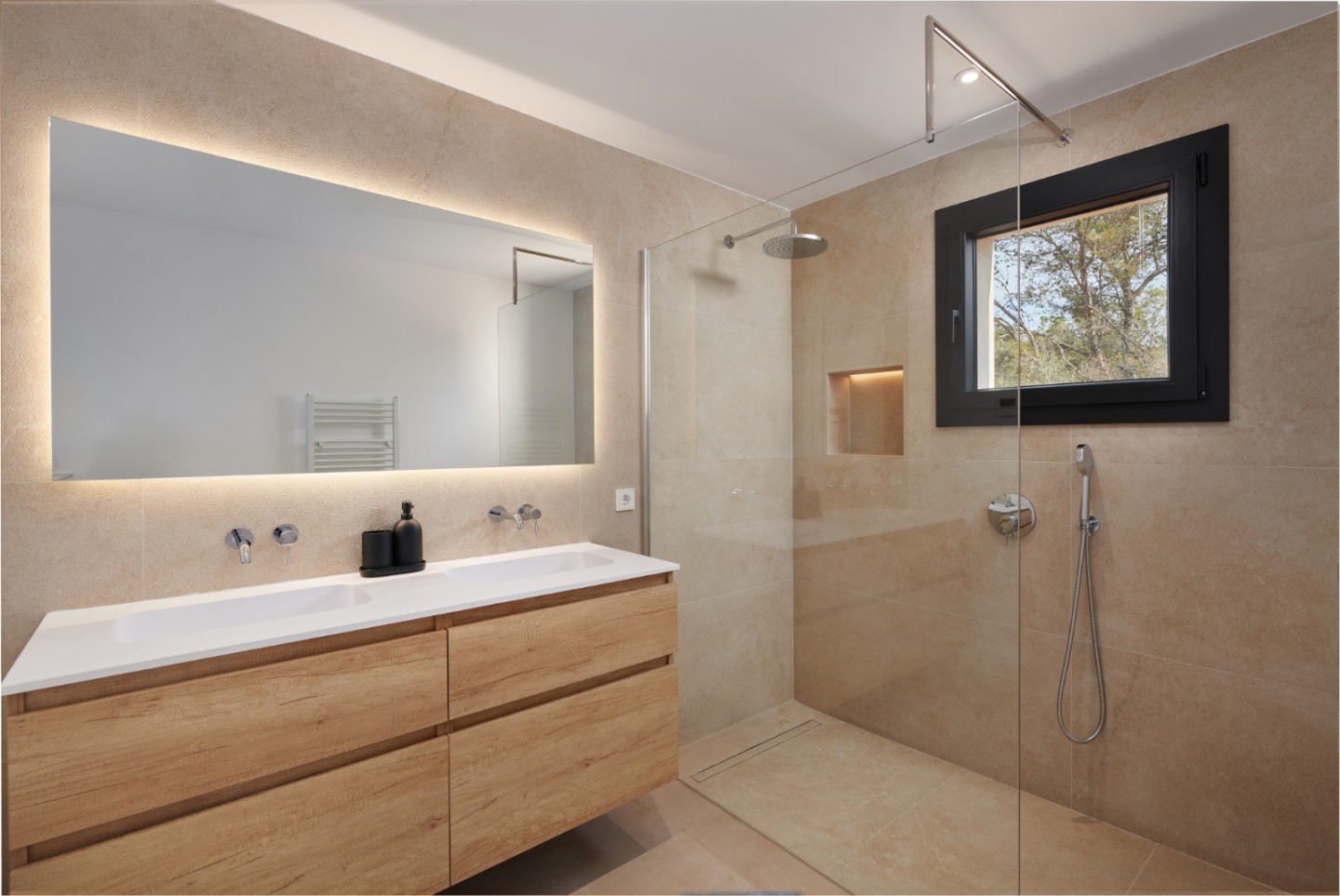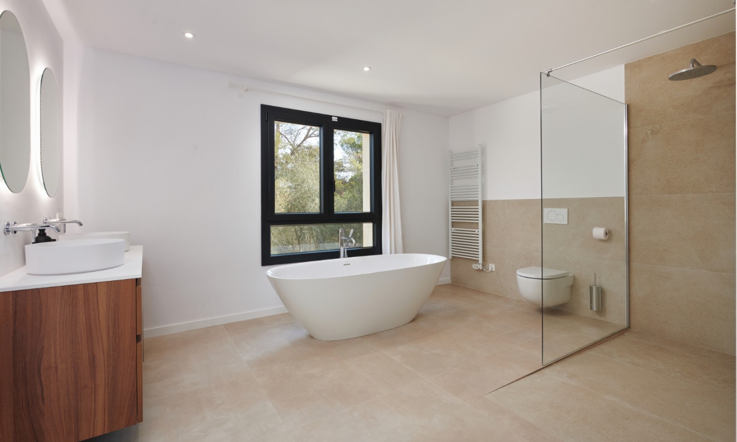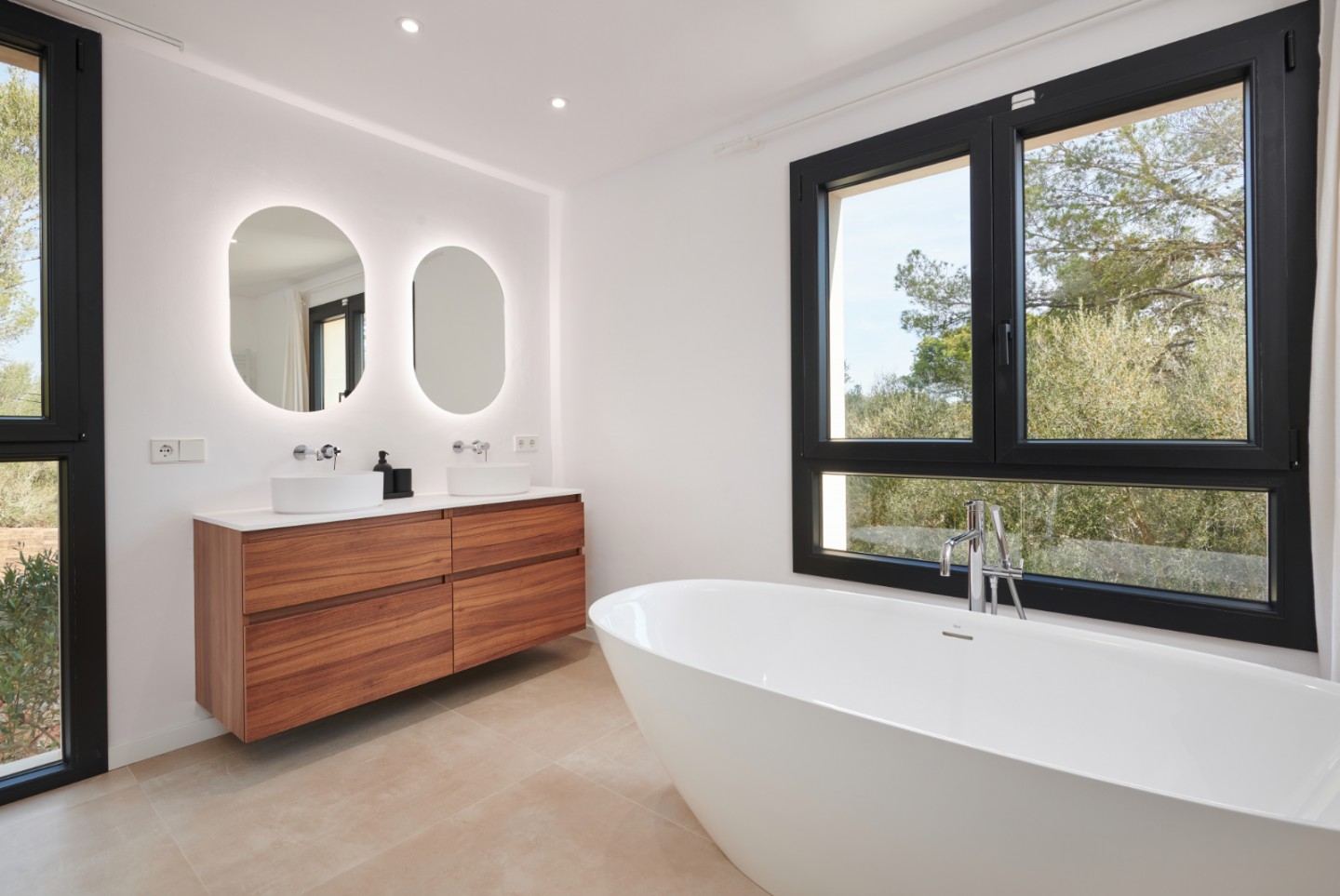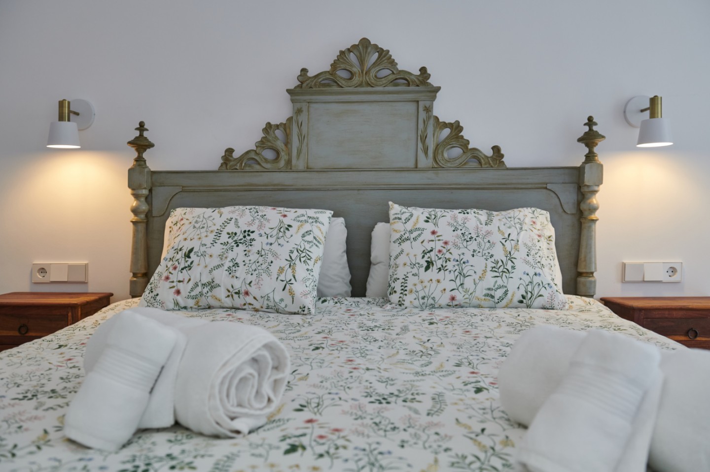 La casa dispone de un total de tres habitaciones, dos de ellas con dos camas individuales y una con una cama doble y balcón. Existen dos baños, uno de ellos en suite y con bañera de esquina y el otro con bañera tradicional.